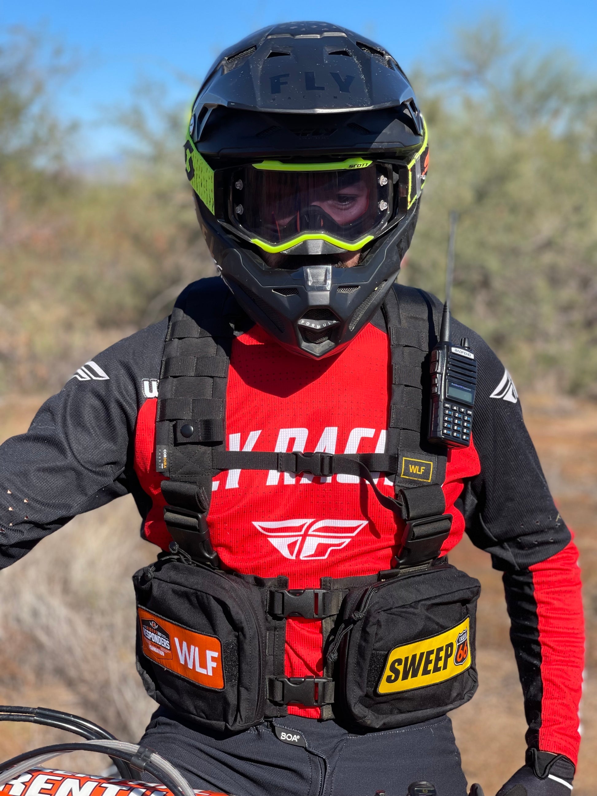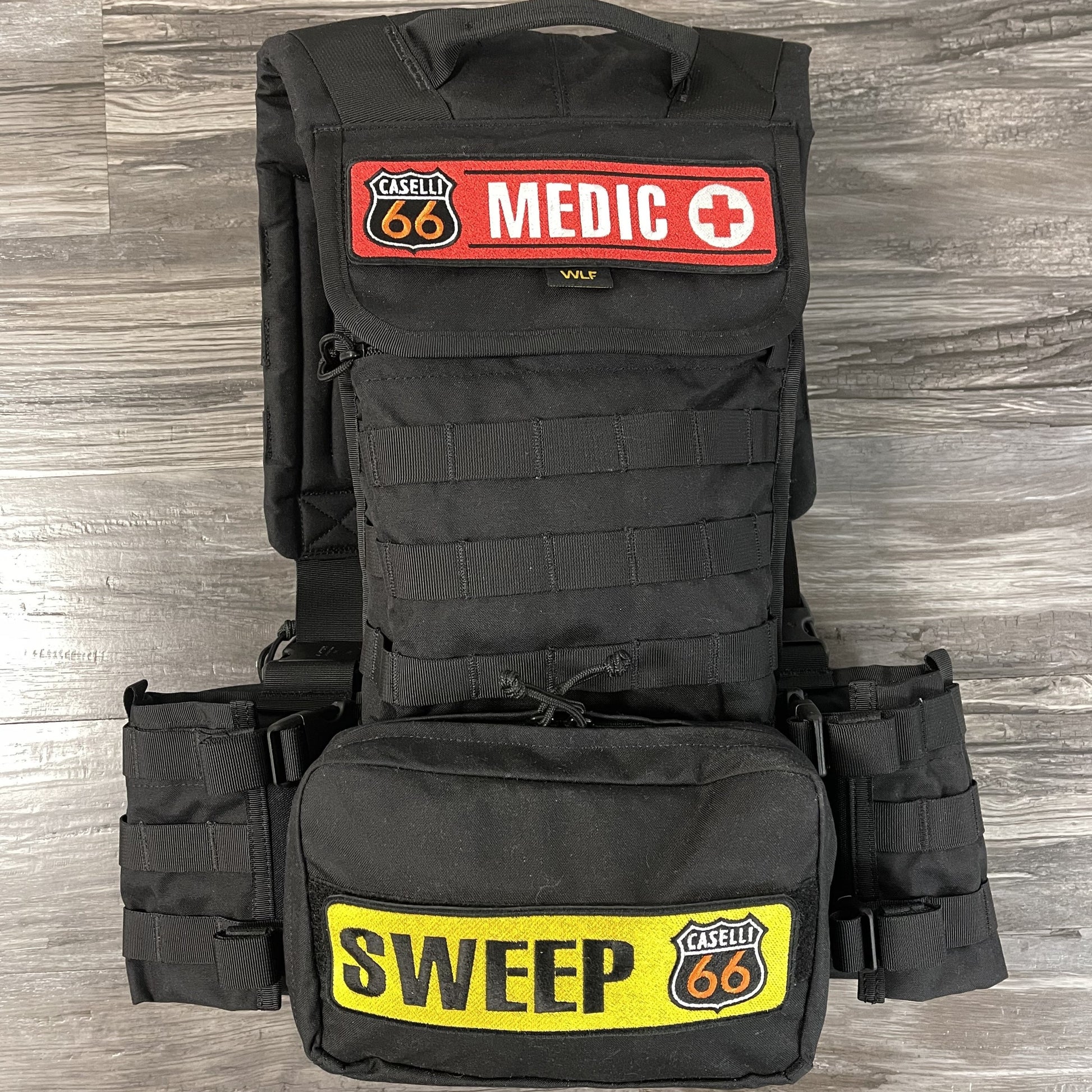 The Kurt Caselli Foundation has developed a ready-to-go Medic Sweep vest for Moto Medics. A comprehensive list of safety items is packed into a WLF Enduro Pack Vest complete with Velcro identification patches.