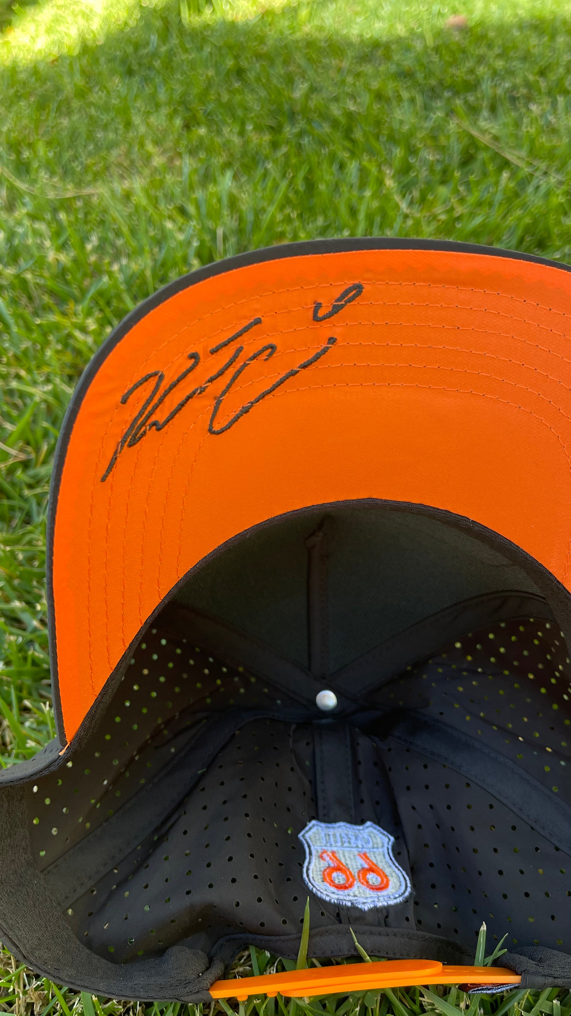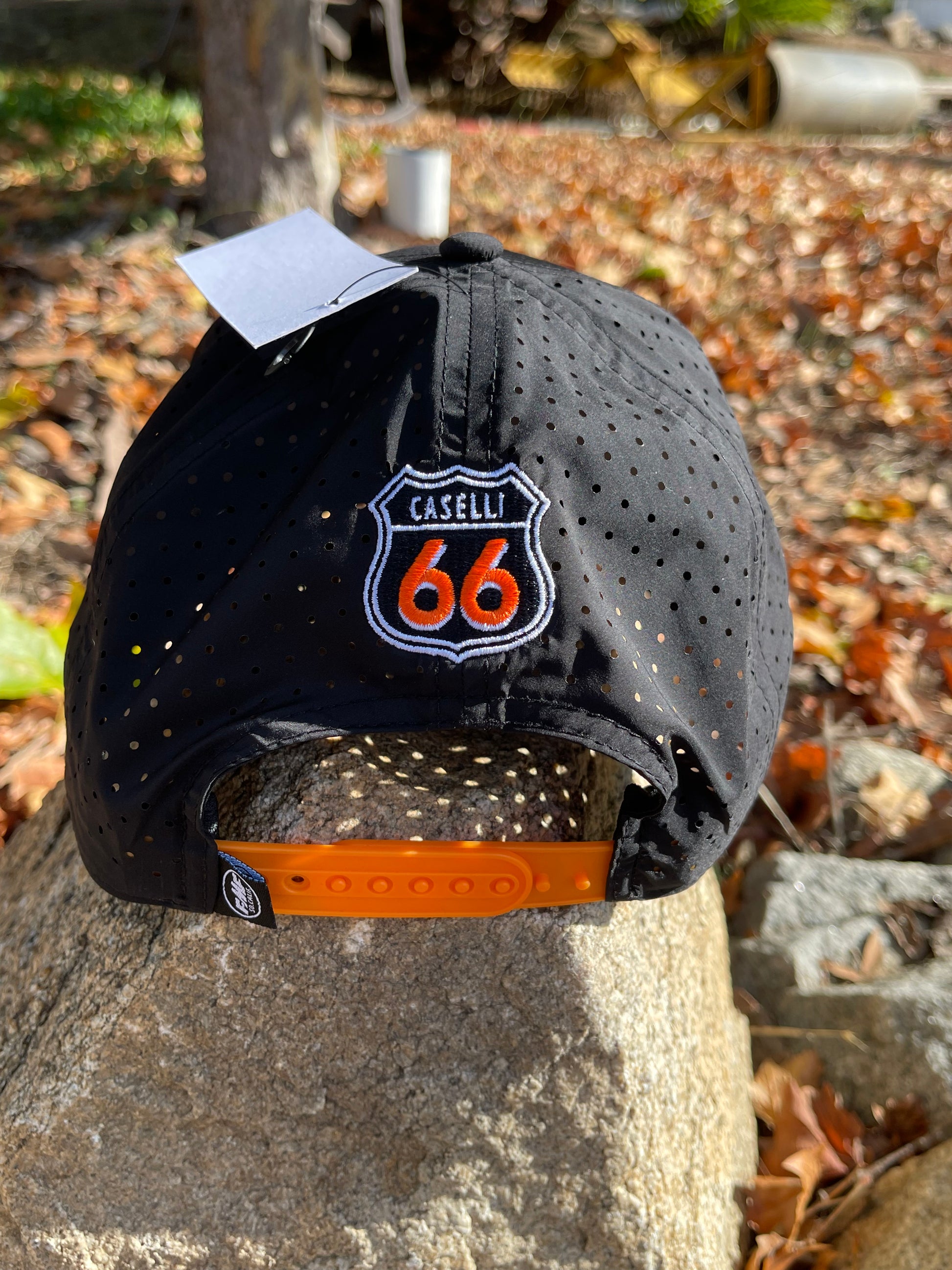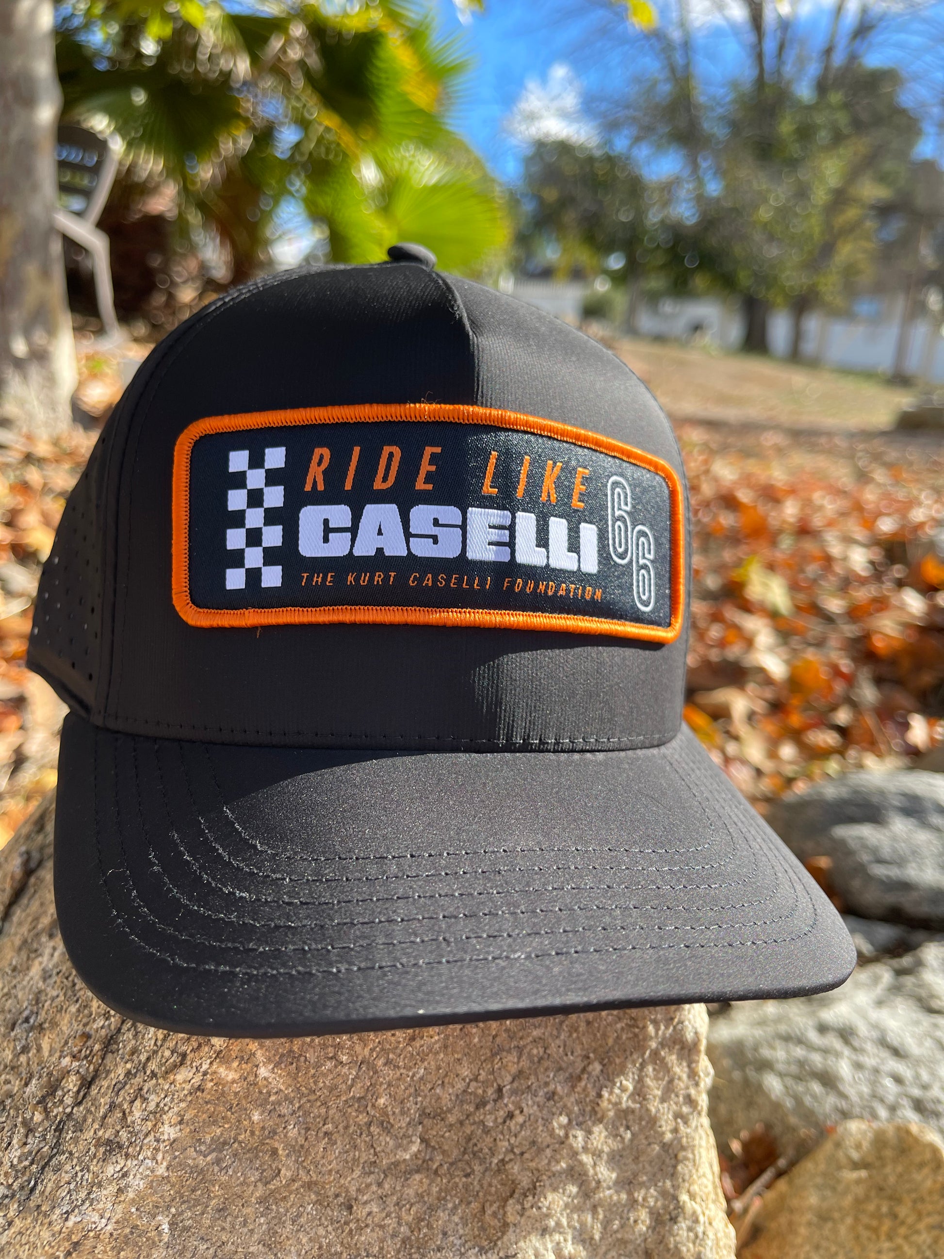 Show your support for legendary rider Kurt Caselli with the Ride Like 66 Snapback Hat. With an athletic tech style and curved bill, the sleek black hat features a Ride Like Caselli 66 patch and Caselli Shield logo on the back, complemented by Kurt's signature in black on the bottom of the orange bill and FMF racing logo on the left side. Represent in style with this iconic hat.